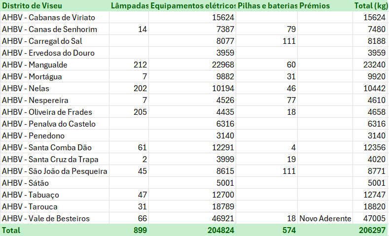 As 18 associações humanitárias de bombeiros voluntários do distrito de Viseu, que participaram ativamente na 10ª edição do Quartel Electrão, que decorreu ao longo de 2025, recolheram 206 toneladas de pilhas, baterias, lâmpadas e outros equipamentos elétricos que foram enviados para reciclagem pelo Electrão.