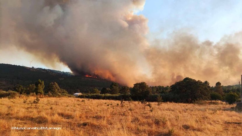 O fogo que deflagrou por volta das 14h30, esta sexta-feira, continua ativo e com bastante intensidade, numa altura em que as temperaturas rondam os 25º e a velocidade do vento se encontra a aproximadamente 12Km/h.