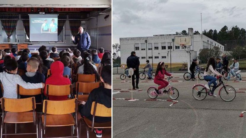 À sessão formativa, em sala, seguiu-se uma atividade no exterior, com bicicletas, num circuito criado dentro do recinto escolar, onde os alunos puseram em prática os conhecimentos adquiridos.