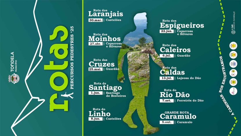 Depois do PR1, realizar-se-á, a 27 de abril, o PR6, Rota dos Moinhos, na União de Freguesias de Caparrosa e Silvares e a 25 de maio o PR3, Rota das Cruzes, na freguesia do Guardão. Em junho têm lugar o PR5, Rota de Santiago (dia 1), na freguesia de Santiago de Besteiros, o PR2, Rota do Linho (dia 8), na freguesia de Castelões, e o PR8, Rota dos Espigueiros (dia 22), na União de Freguesias de Caparrosa e Silvares. A 6 de julho será percorrido o PR4, Rota dos Caleiros, na freguesia do Guardão, e no dia 13, o PR7, Rota das Caldas, na freguesia de Lajeosa do Dão. Depois de uma pausa em agosto, o calendário de trilhos prosseguirá, a 7 de setembro, com a inauguração de um novo percurso pedestre, a Rota do Rio Dão, na freguesia de Ferreirós do Dão. A temporada encerra a 5 de outubro, com a Grande Rota do Caramulo, que se estende pelas freguesias de Castelões e do Guardão.