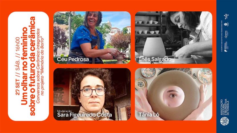 “Um olhar no feminino sobre o futuro da cerâmica” é uma conversa informal com Céu Pedrosa, Inês Salgado e Tânia Ló, e moderação de Sara Figueiredo Costa, no próximo sábado, dia 27 de setembro, pelas 16h00.