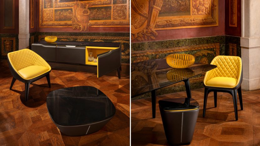 Inspirada no universo automóvel icónico dos anos 50-60 — ADN da Pininfarina , a coleção integra detalhes de sofisticação, como: pele de elevada qualidade, trabalhada e cosida à mão; costuras em losango que evocam interiores de automóveis clássicos; formas envolventes inspiradas nos baquets desportivos; a utilização de madeira de freixo, reconhecida pela resistência e elasticidade; tampo em pedra natural Nero Marquina, trabalhado com acabamento manual em versões alto brilho ou mate, ambas com tratamento anti mancha.