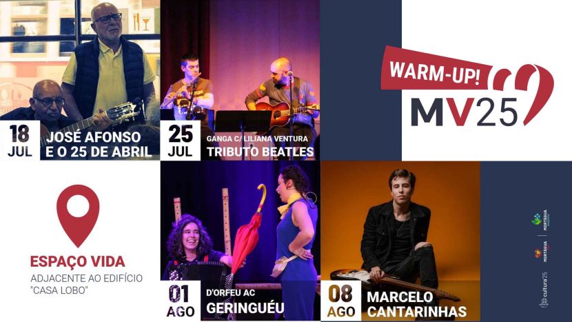 O primeiro Warm-Up MV acontece já nesta sexta-feira, 18 de julho, com um espetáculo dedicado às canções de Abril. António Oliveira (voz), Valdir Araújo (guitarra acústica), Francisco Henriques (guitarra portuguesa) vão interpretar canções emblemáticas de Zeca Afonso e Adriano Correia de Oliveira, dois nomes maiores da nossa música popular e da luta pela Liberdade através da canção.